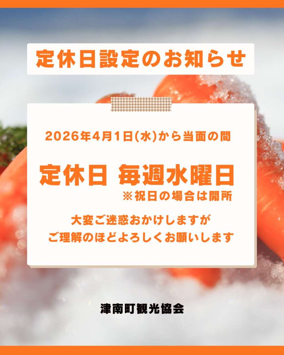津南町観光協会 定休日設定のお知らせ