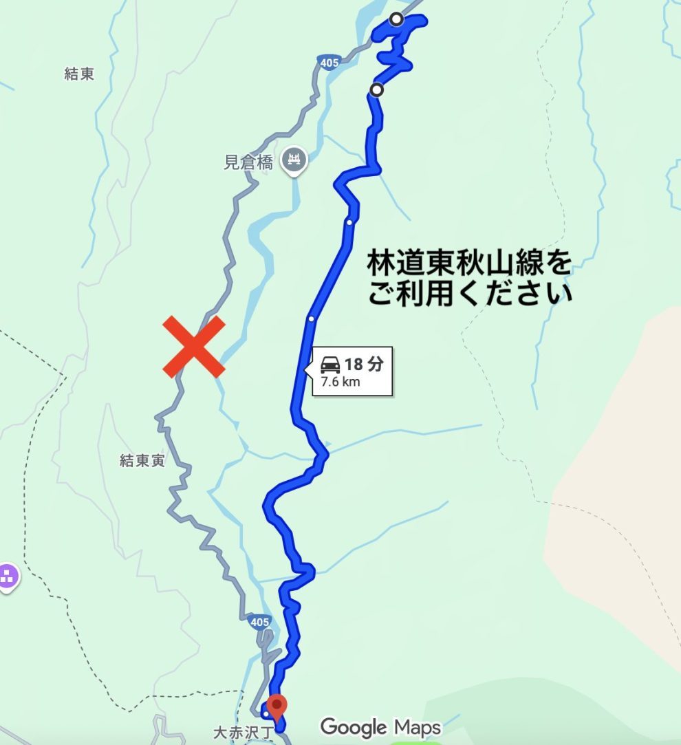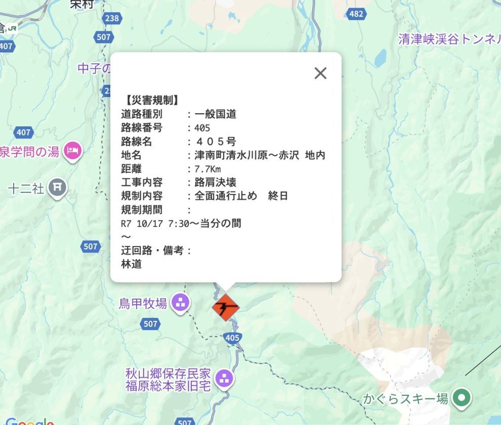 【秋山郷】国道405号(清水川原〜大赤沢区間)通行規制のお知らせ