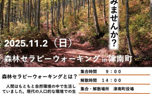 森林セラピーウォーキング秋 イベント 2025/09/18 11月2日(日)に樽田の森を会場に「森林セラピーウォーキング秋」が開催されます。森林浴が好きな人、日々の生活にストレスや疲れを感じて... 住所 津南町大字